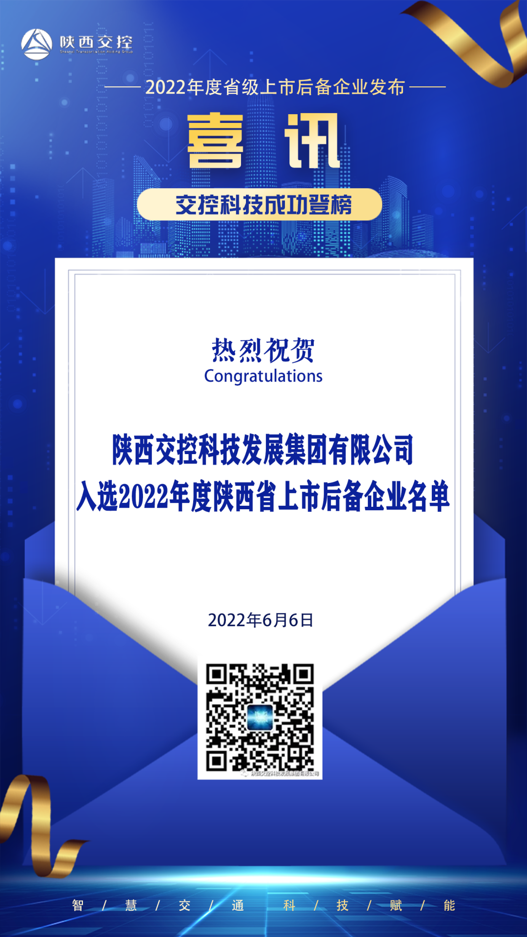 陕西交控科技发展集团有限公司入选2022年度陕西省上市后备企业名单