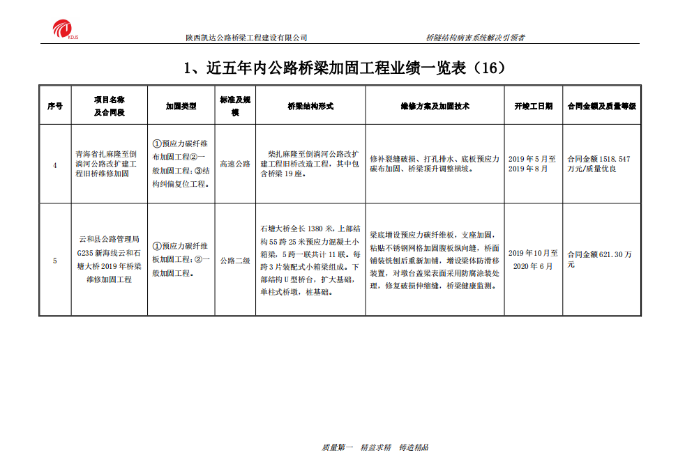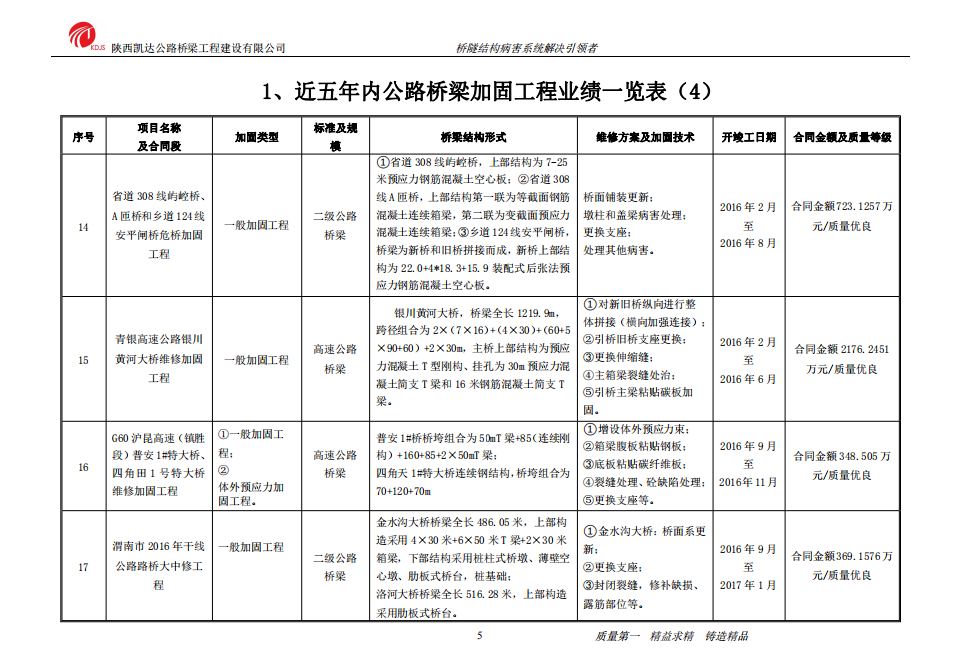 近五年内公路桥梁加固工程